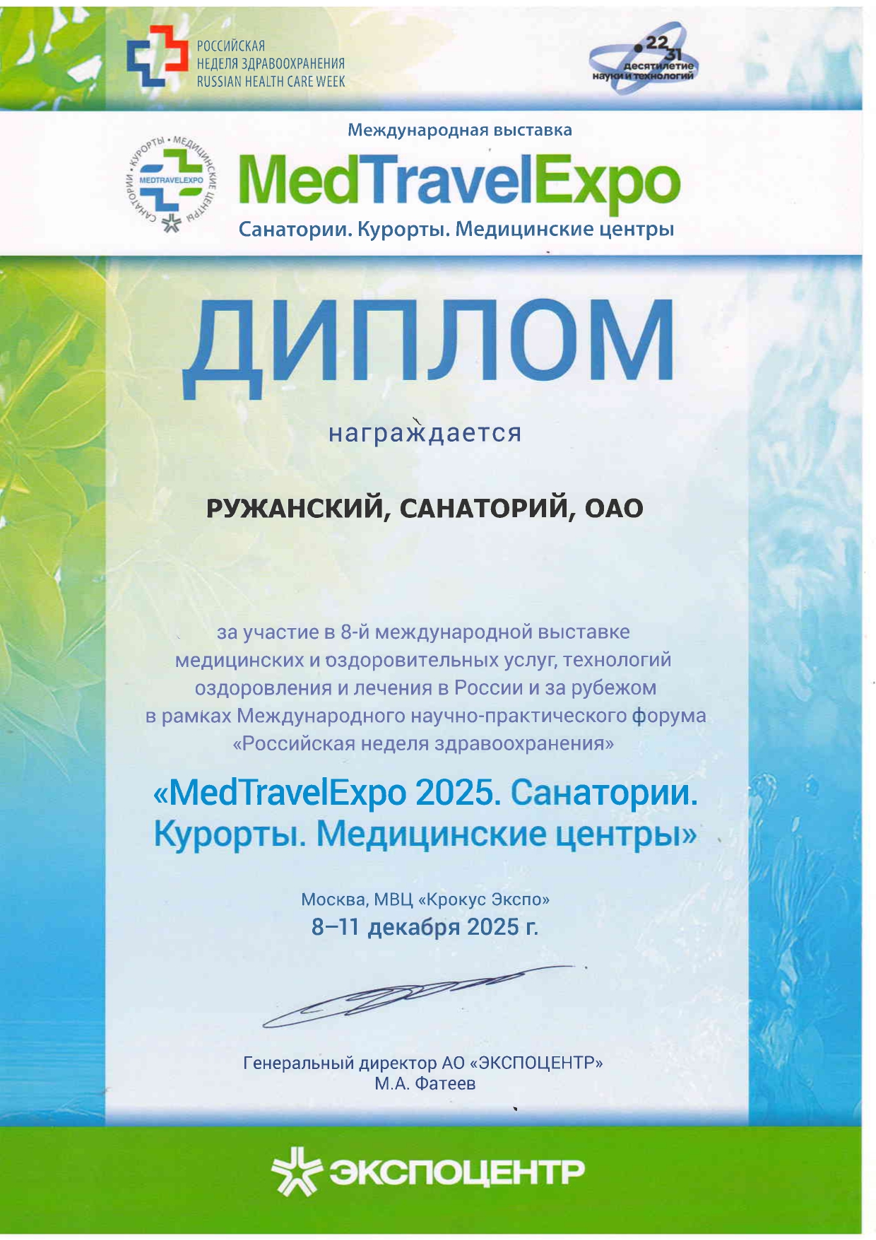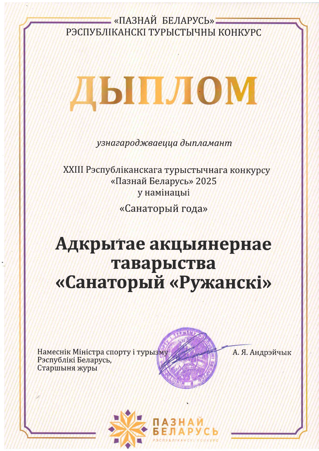 Награды санатория «Ружанский».