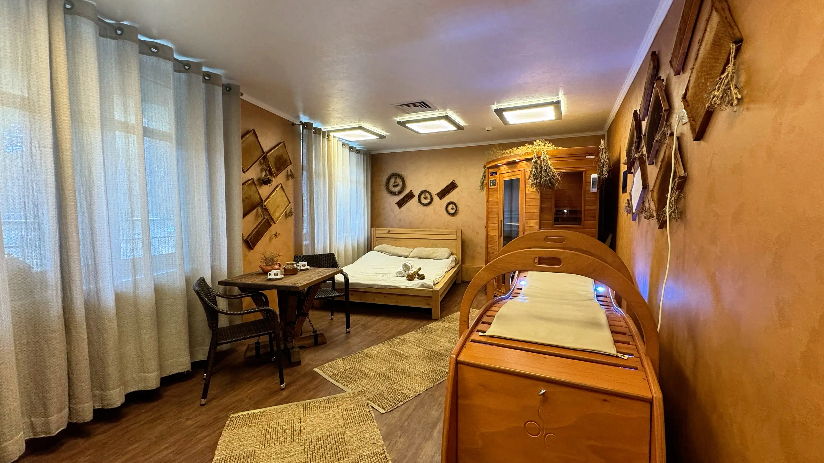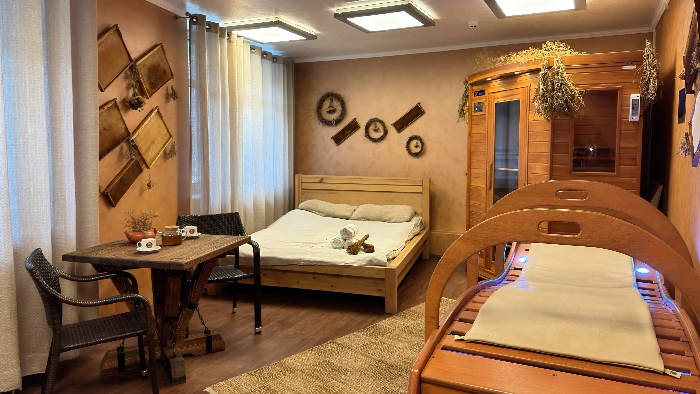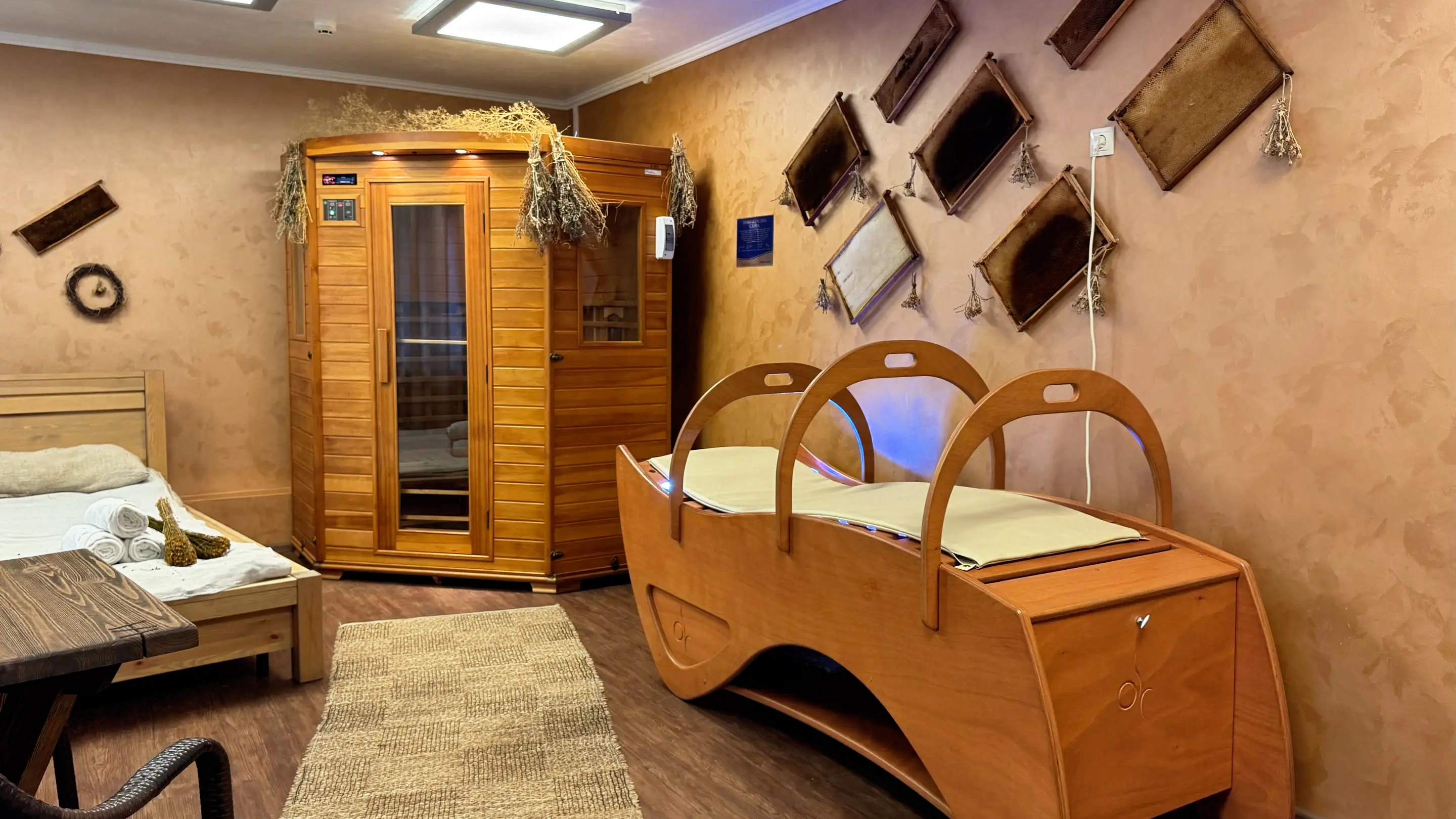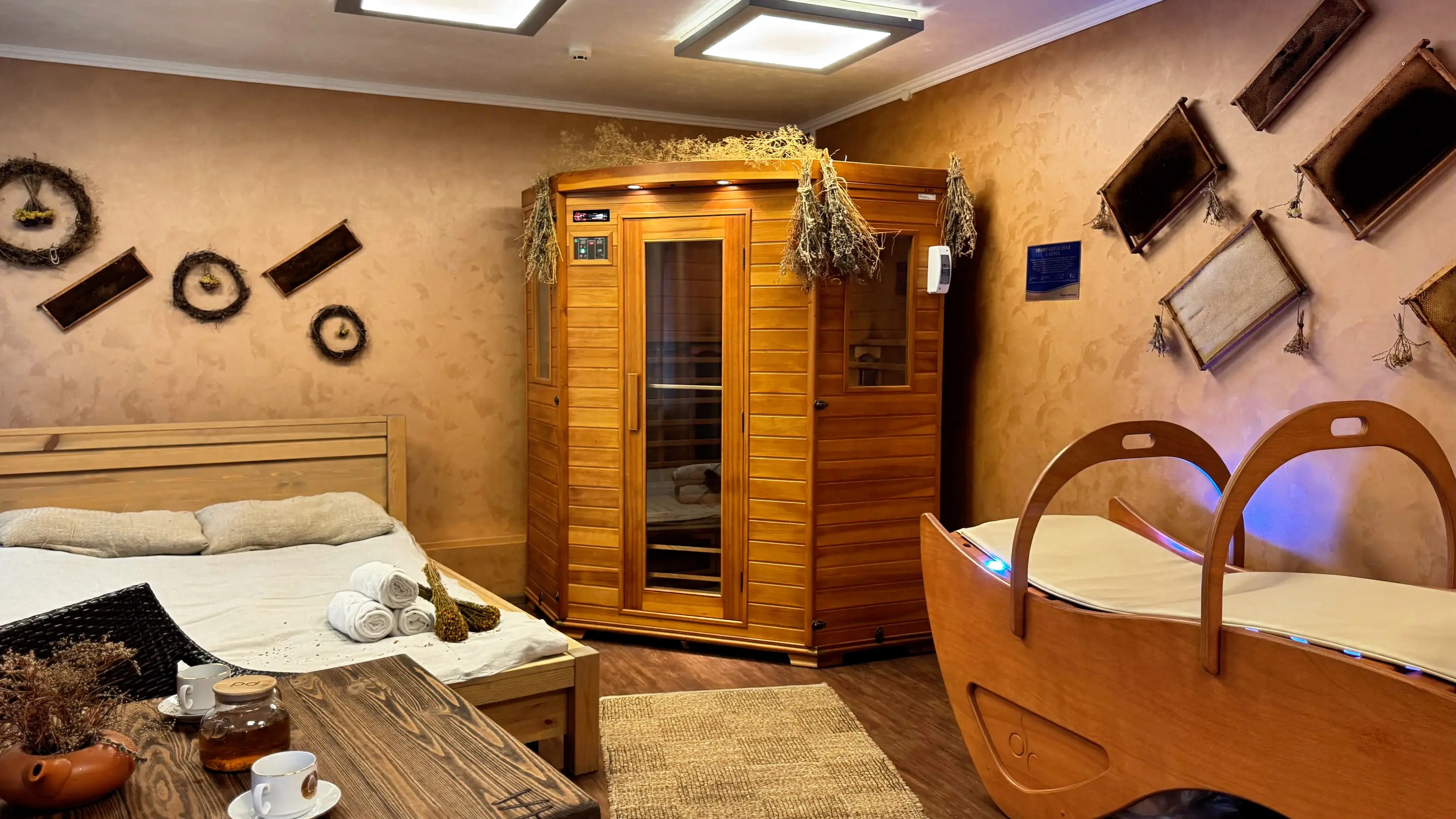 Сенно-медовая комната (Кедровая бочка, Инфракрасная сауна, Паровая кушетка)